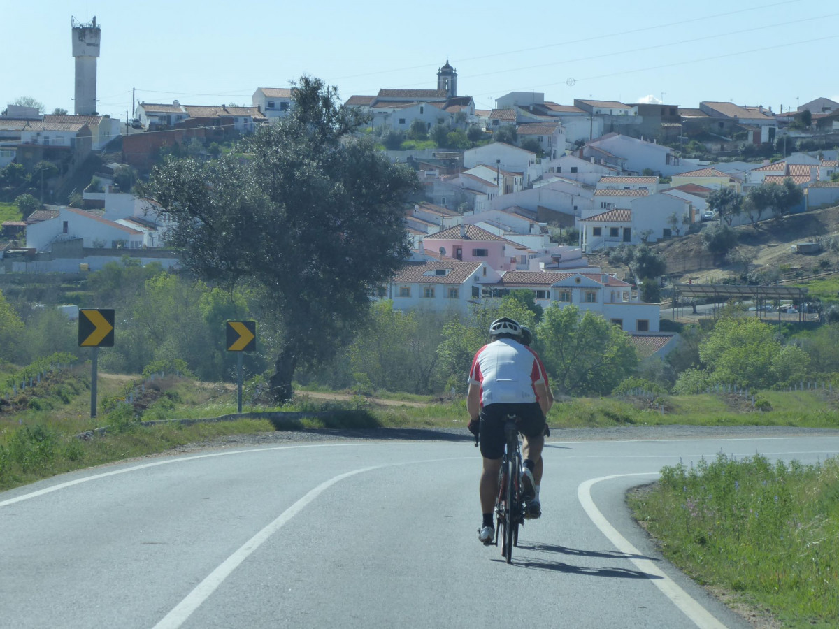 Our longest day sees us leaving the mountains of northern Portugal and crossing into flatter southern Portugal. First, however, we tackle Melriça Peak, where a monument marks the geodesic centre of Portugal. With the day’s main challenge behind us so soon, we can enjoy a long stretch of predominant descent (with a few small climbs just to keep it varied!) to Abrantes, on the banks of the River Tejo. The longest river on the Iberian Peninsula, the Tejo marks a change in scenery and terrain as we ride south on rolling roads through the beautiful Alentejo region. Known for its undulating fields of wheat and cork trees, olives groves and vineyards, it’s wonderful cycling country through small towns and villages – and although still hilly, the hills are considerably lower and easier! We pass another reservoir at Montargil, crossing the dam, and head south and gradually uphill to the historic town of Montemor-o-Novo, overlooked by its crumbling castle. Night hotel.