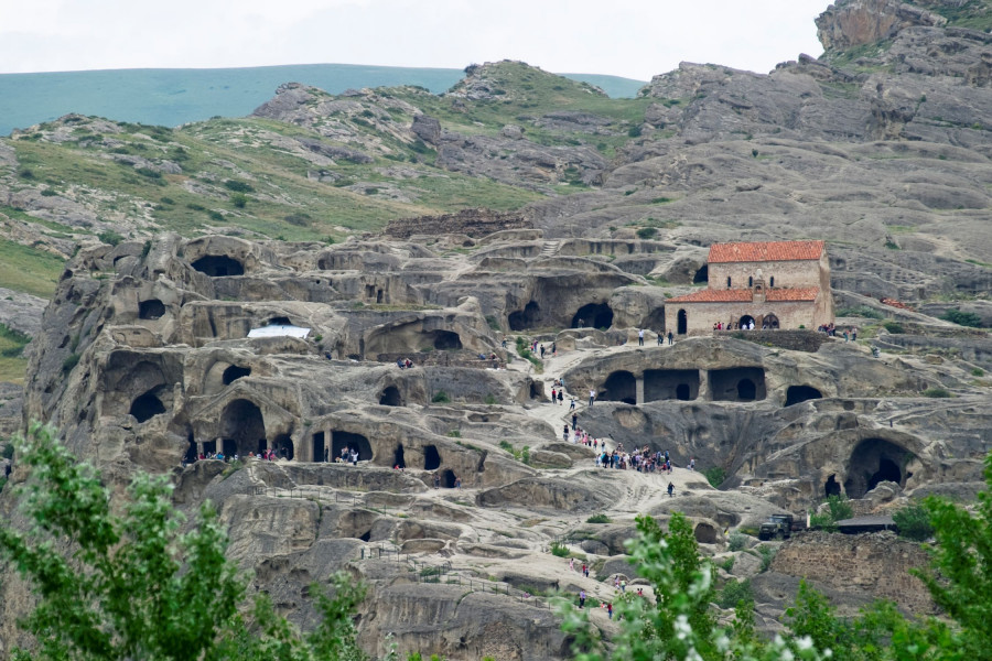 • After breakfast we start cycling towards Vardzia, one of the biggest highlights of our week. Our route gradually ascends as we follow the Kura River upstream, admiring the more mountainous scenery unfolding around us. After lunch with a local family, we devote our afternoon to Vardzia, a magnificent cave town of the Golden Age. This cave complex – which once consisted of over 3000 caves – stretches over half a kilometre and was one of the best examples of Georgia’s renaissance. The rock-hewn cave, with its 12th-Century frescoes, is simply amazing; we can only wonder at how much time and effort it took to create over 1000 years ago! We stay and dine tonight at a family hotel in Vardzia. Night hotel.