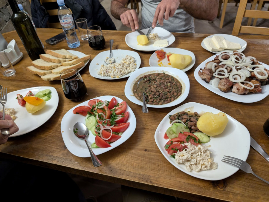 • A drive this morning takes us to Saghamo Lake, where we meet our bikes for the last time. Our last day of cycling is unforgettable, as we cross the high plateau. We pass Paravani Lake – the largest lake in Georgia. It’s quite shallow and the colour of the water can appear in a variety of shades of blue. You may see some of the cranes that inhabit this area; many nest in the villages that dot this plateau. At approx. 2000m elevation, this region is known as the Georgian Siberia; in winter, temperatures can plummet to -30˚C. Thankfully we’ll be enjoying warmer weather, and the alpine meadows around us are often colourful with wildflowers. We finish our ride with a lovely descent to Dashbashi Canyon. Carved naturally out of the volcanic basalt rock, it’s a spectacular and fitting end of our ride. We can visit the 240m-long glass bridge that spans the gorge, for an obligatory group photo before driving back to Tbilisi, where we enjoy a celebratory dinner in a local restaurant. Night hotel.