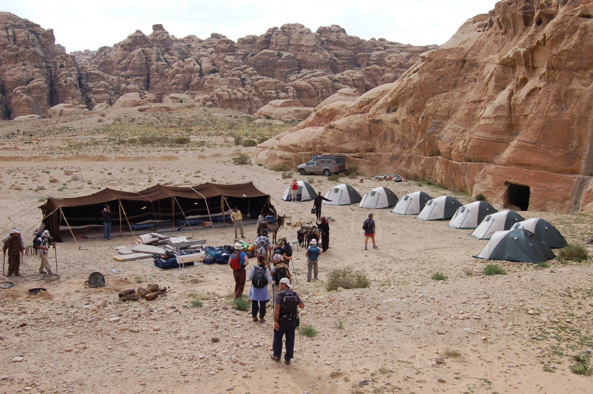 We camp in two-man tents; these are usually expedition-style (ie sleeping room only). Camps are usually simple, in remote locations with amazing views and incredible sunsets! There are toilet tents and a communal dining tent (with comfy mats to sit on, or opt for chairs/stools round a campfire). The local crew look after us very well. The last camping night is in a permanent camp with great facilities; we sleep in canvas-walled huts containing proper beds! This is a magical last night out under the stars. At the start and end of the trip we stay in good hotels (2-3* standard at start, more resort-style at the Dead Sea); rooms are twin-share.